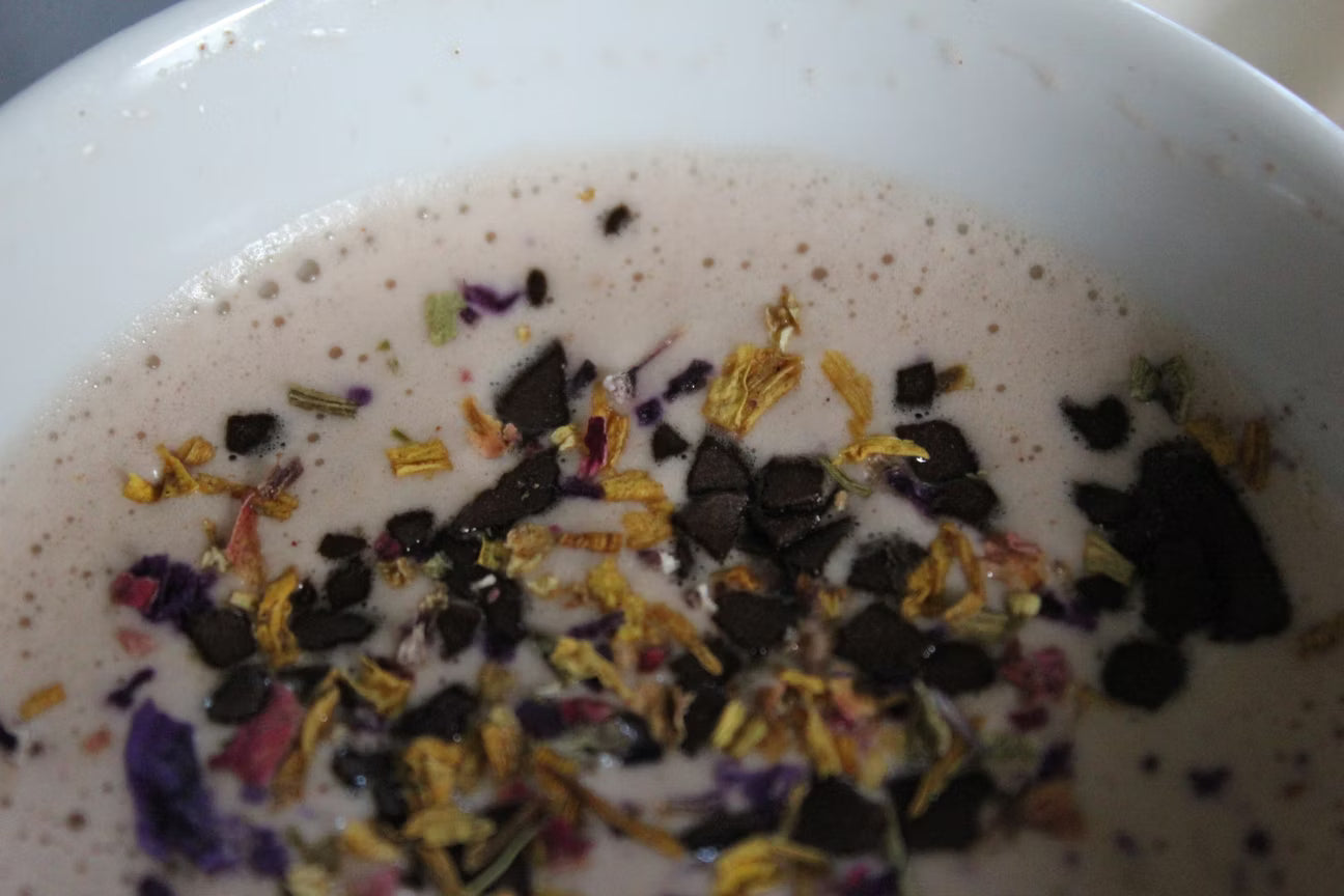 Eine Blütenmischung zum Verzieren von Latte Macchiato, Cappuccino, Desserts oder heißer Schokolade.
